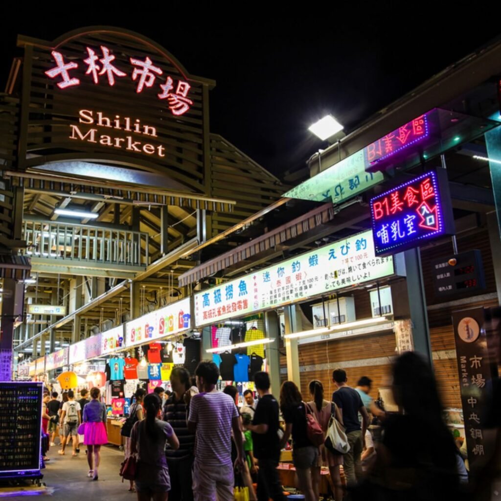 For shopping, Shilin offers a mix of trendy Korean and Japanese-style fashion, shoes, handbags, accessories, and plenty of souvenir shops selling pineapple cakes and local snacks.