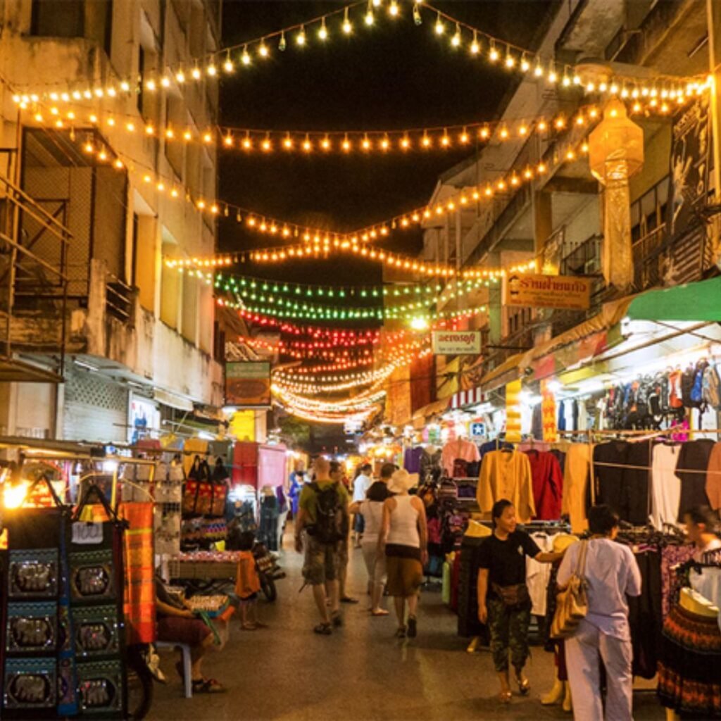 Savor grilled meats, noodles, sweets, and specialties from northern Thailand. Handmade souvenirs, pottery, scarves, and traditional hill-tribe crafts are also available.